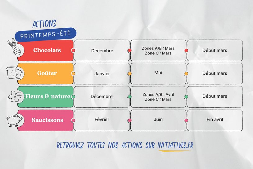 Pour simplifier la vie des associations de parents d’élèves, des enseignants, nous avons préparé un planning des actions de collectes de fonds à mener tout au long de l’année scolaire. Vous y trouverez, mois par mois, les opérations les plus adaptées à la saison. Un outil pratique à partager avec votre équipe pour gagner du temps et organiser vos actions sereinement !