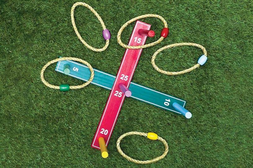 Le but : lancer des anneaux en visant un support. Selon l’âge et la dextérité des joueurs, on peut corser le jeu en faisant varier la distance de lancer et/ou demander de respecter les couleurs.