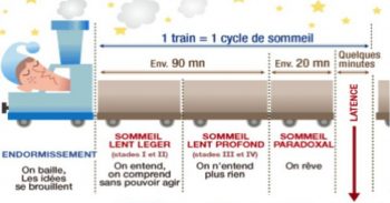 Lorsque l’on dort, le sommeil se découpe en « stades » d’environ 90 minutes. Il est composé de 75% de sommeil lent et est paradoxal à 25%.